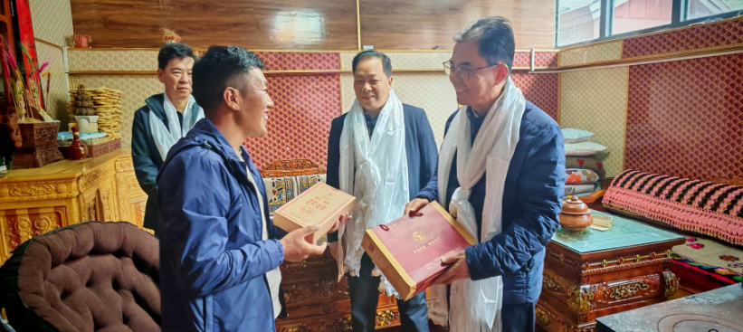考察团一行随即前往山南市隆子县调研,与隆子县委书记李宁、县委常委、统战部部长嘎玛旦增等领导进行了会谈。赵颖君一行在县委常委、统战部部长嘎玛旦增、副部长索朗巴珠的陪同下,翻越了三座海拔超5000米山峰,深入隆子县斗玉珞巴民族乡、玉麦乡、扎日镇等乡镇及村,不仅学习了蔵区同胞的爱国主义思想、情怀与精神,而且考察了茶叶加工厂、了解藏区本地小众茶的生产、区内区外茶消费情况等,与此同时,还走进藏民同胞家中,代表益阳市委统战部赠送“湘益”茯茶、表达了益阳人民的热情厚爱与对藏区人民的美好祝福。