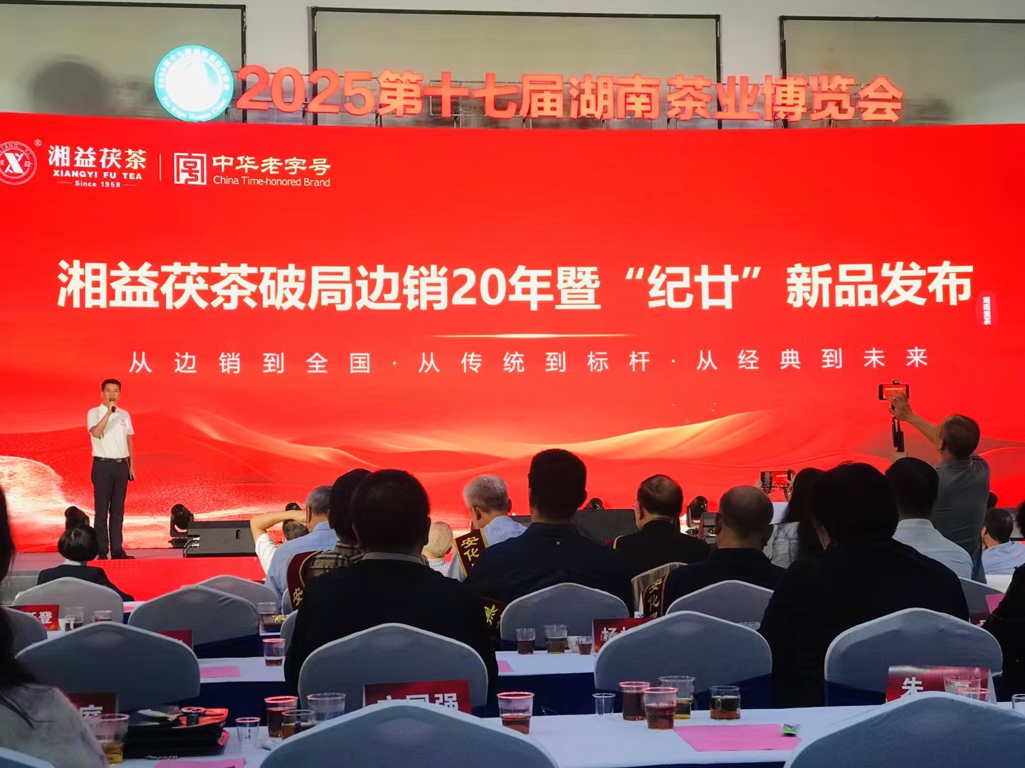 9月20日,在第十七届湖南茶业博览会安化黑茶品牌推介活动隆重举行之际,湘益茯茶新品发布仪式成为活动焦点。本次推介会由刘仲华院士工作站、湖南省茶业协会、益阳市农业农村局、益阳市工商联、安化县人民政府特别支持,益阳市茶业协会、安化县茶业协会主办。益阳茶厂重磅推出的"纪廿"新品,以其卓越品质和创新理念,为茯茶市场注入全新活力。